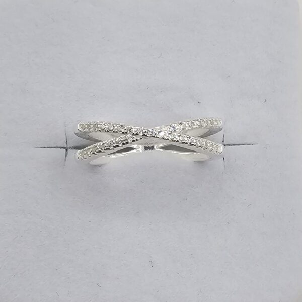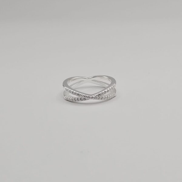 Anel 2 Fios em X Metade Cravejado em Prata 925 – Modernidade e Sofisticação em um Só Acessório