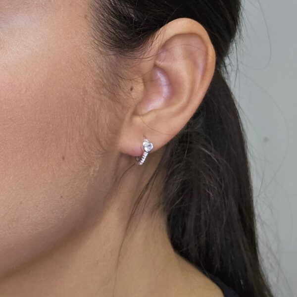 Tamanho: 1,2 cm – delicada e confortável para o dia a dia Fecho: Clip Design sofisticado: Argola redonda cravejada com um coração central que adiciona um toque romântico e especial
