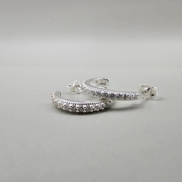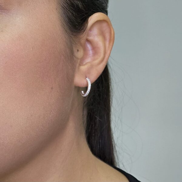 Brinco Meia Argola Redonda Cravejado 1,5cm (2mm) em Prata 925 – Brilho e Sofisticação em Cada Detalhe