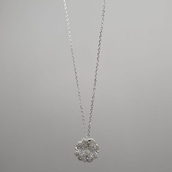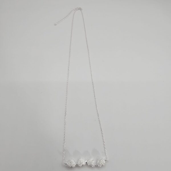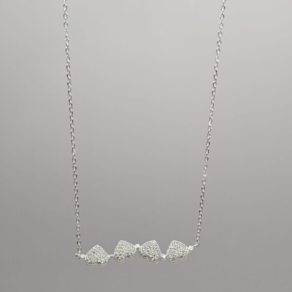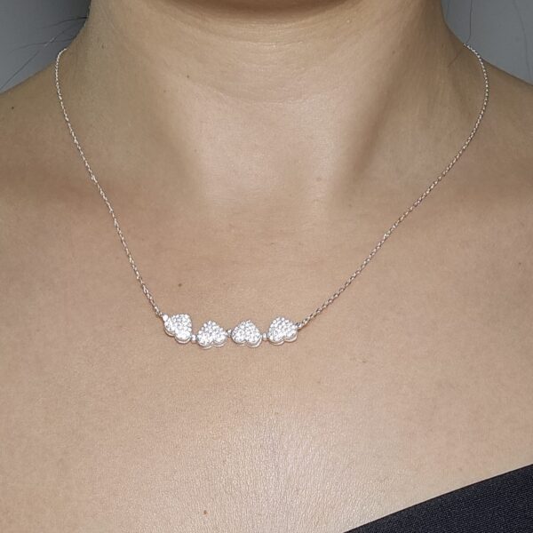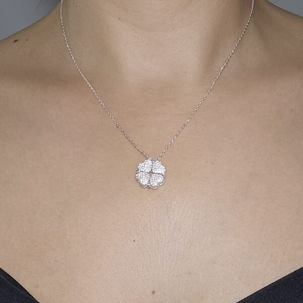 Design: Colar todo cravejado com padrão de trevo e 4 corações , acompanhado de um pingente 2 em 1 que pode ser usado com um trevo ou quatro corações.