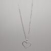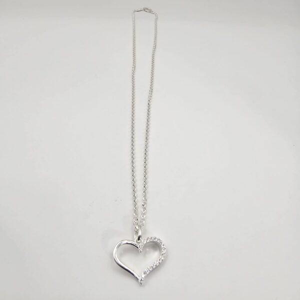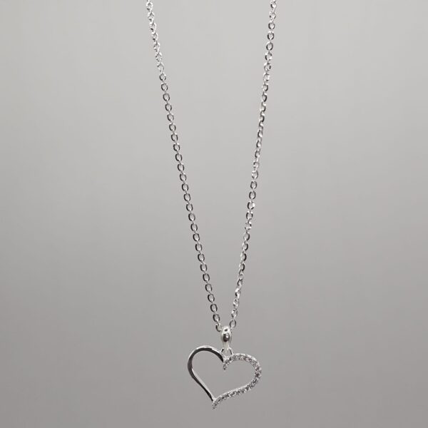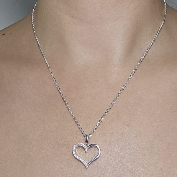 Colar 45cm com Pingente Coração Vazado Metade Lisa Metade Cravejada 1,8cm em Prata 925 – Amor e Brilho em Perfeita Harmonia