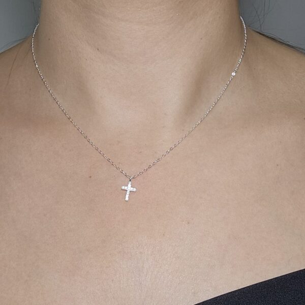 Design elegante: Mini crucifixo cravejada, simbolizando fé e delicadeza