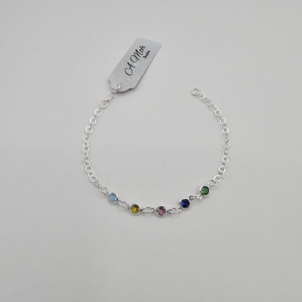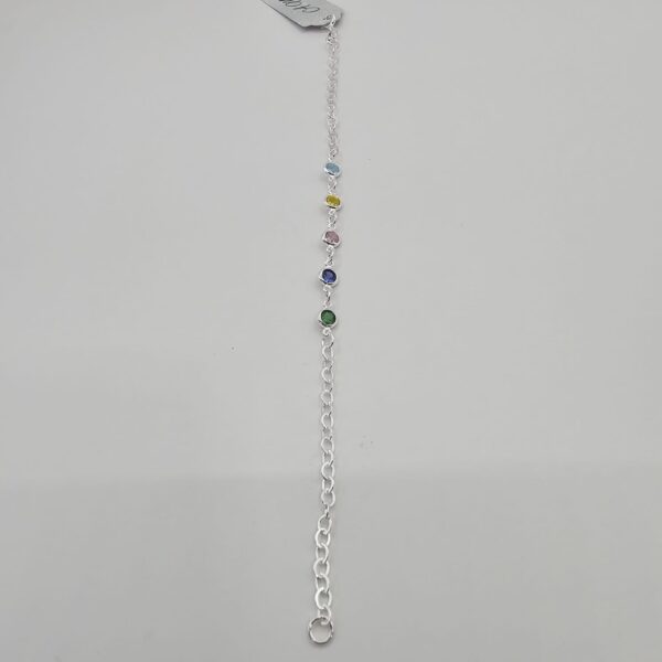 Pulseira 16,5cm Elos Redondo com 5 Zircônias Cores em Prata 925 – PUL1444