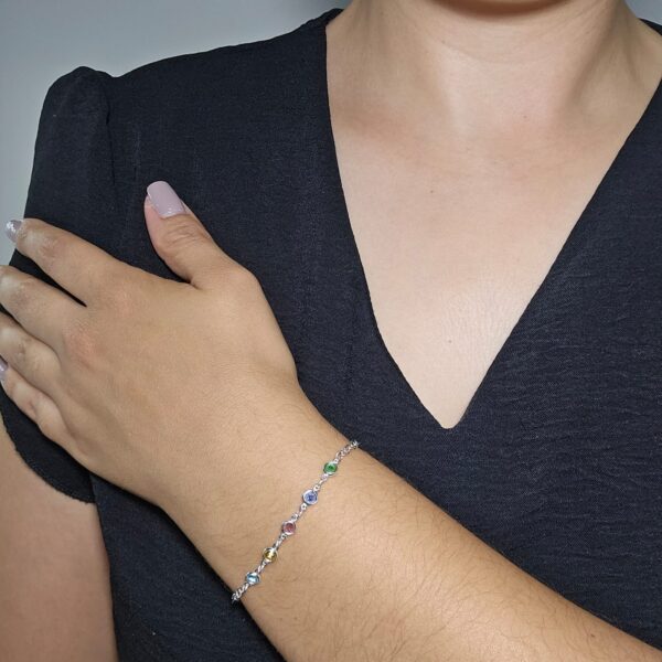Pulseira 16,5cm Elos Redondo com 5 Zircônias Cores em Prata 925 – Brilho, Cor e Elegância Atemporal