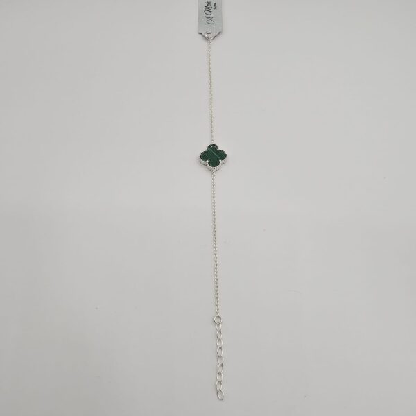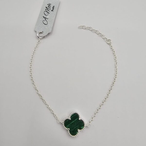Pulseira 16cm Pingente Trevo Malaquita Verde 1,3cm + Extensor 3cm em Prata 925 – PUL1243