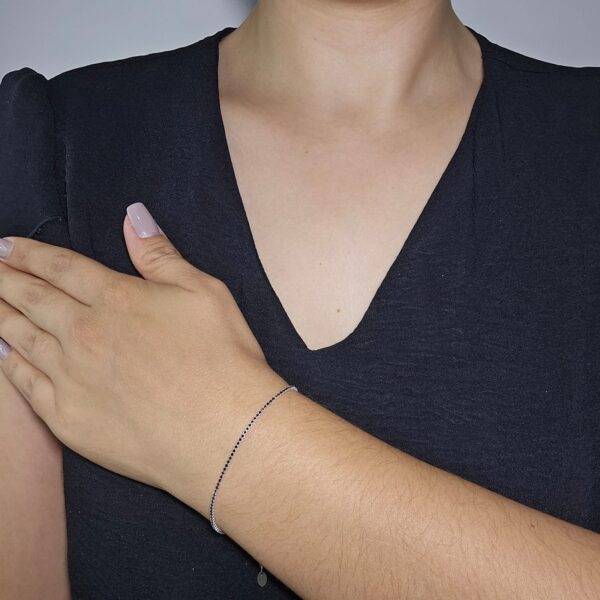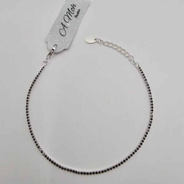 Pulseira 16cm Riviera Preto 1,3mm + Extensor 3cm em Prata 925 – Estilo Moderno com Toque Sofisticado