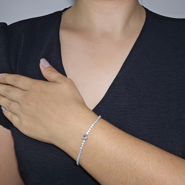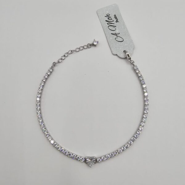 Pulseira 17cm Riviera Pedra Coração 6mm + Extensor 3cm em Prata 925 – Encanto e Sofisticação com Toque de Amor